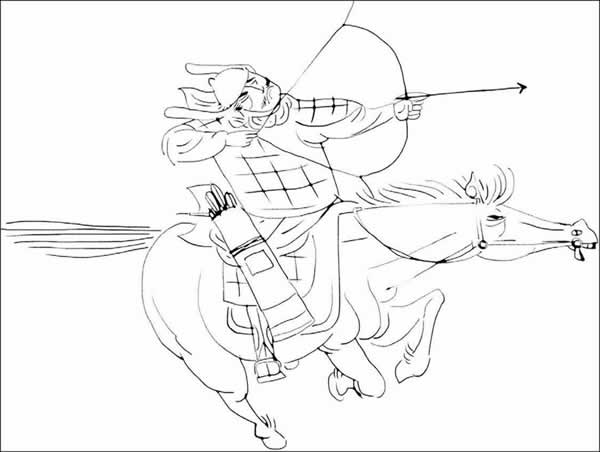 他勒住马头,迎着落日的最后一丝阳光,向壮美河山投下最后的一瞥,仰天大笑: