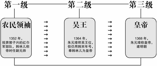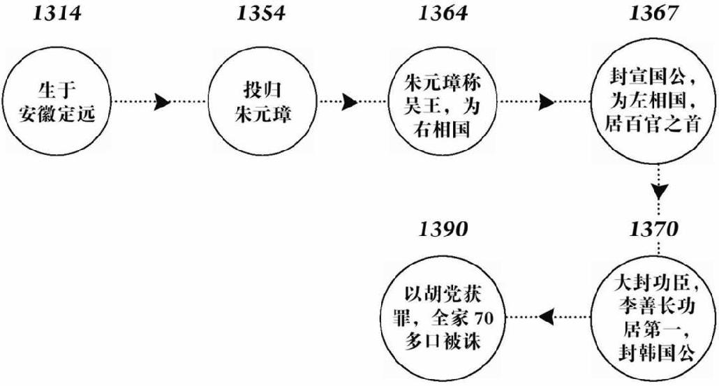 至正二十四年(1364):37岁,称吴王,仍用韩宋年号,以李善长、徐达分别为右相国、左相国。