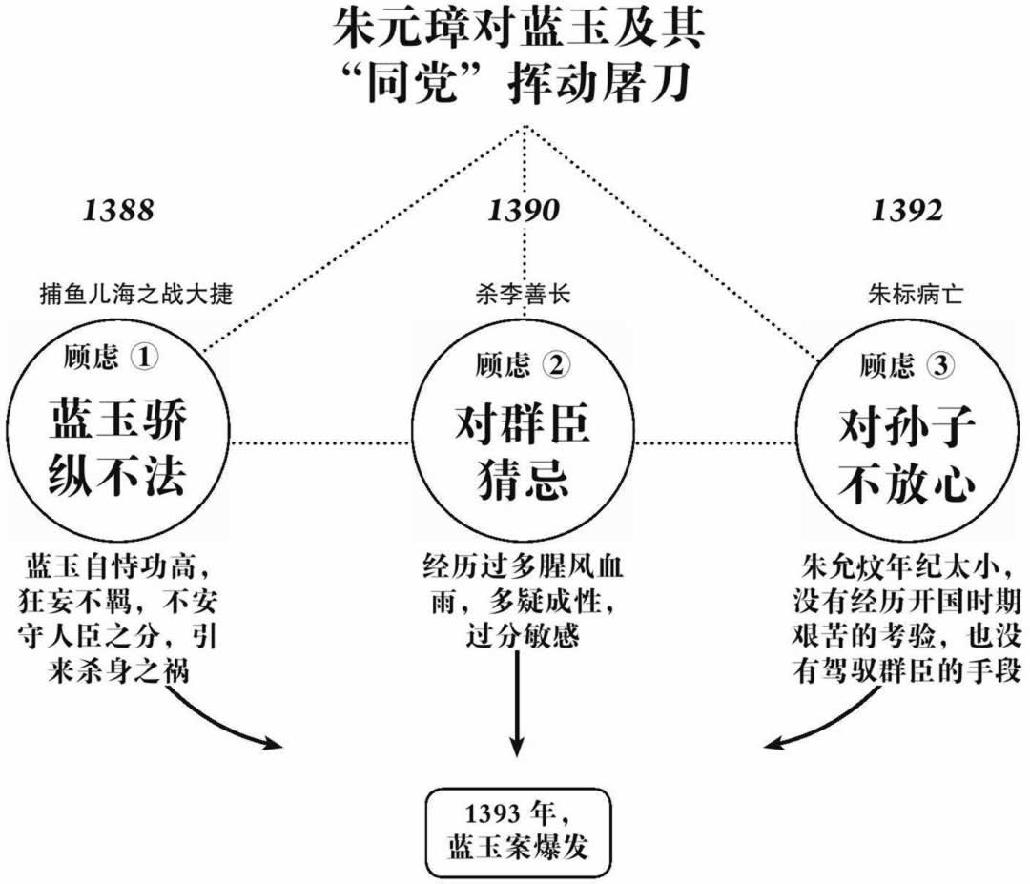 洪武二十六年(1393):66岁,蓝玉案发,颁布《逆臣录》。